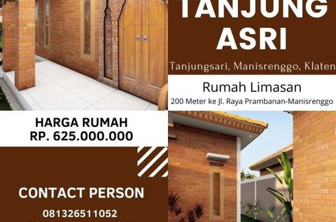 ‹ › 1/5 3 Bedroom House for sale in Tanjungsari, Central Java Klaten, Central Java RP 625,000,000 (RP 2,659,574 / m2) 3 1 235 m2 House Car park Garden House for sale of 235sqm, consisting of 3 bedrooms and 1 bathroom located at Tanjungsari, Klaten. Facilities include: Car park and Garden. Shindid Heiwa Property Call