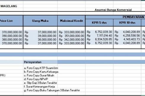 Rumah konsep minimalis modernLokasi : Suko 2, Sokorini, Muntilan, Magelang, Jawa TengahLegalitas lengkap : SHM, IMBTersedia 6 unit rumah Siap Bangun :• Kav A1, Luas Tanah 128 / 64• Kav A2, Luas Tanah 120 / 64• Kav A3, Luas Tanah 88 / 64• Kav A4, Luas Tanah 110 / 64• Kav A5, Luas Tanah 140 / 64 ( SOLD )Harga Promo mulai 275 juta-anBisa KPR, Proses dibantuSpesifikasi Rumah :Kamar Tidur 2Kamar...