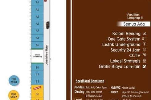 ‹ › 1/6 Rumah dijual dengan 2 kamar tidur di Banyuanyar, Jawa Tengah Surakarta, Jawa Tengah RP 645,000,000 (RP 11,120,690 / m2) 2 2 58 m2 Rumah Swimming pool Security Garden Children's area Video cable Tersedia :-Kolam Renang Exclusive-Taman Bermain-Listrik Underground-Kapasitas listrik 2200 watt-Jalan Paving 6 meter-One Gate system-Pagar Tembok mkeliling 2 meter-Keamanan Satpam 24 jam-CCTV 24 jamBonus :-Gratis Administrasi Notaris-Gratis BPHTB-Gratis BBN-Gratis Biaya konsul designTersedia Cashback puluhan juta Rupiah untuk anda Kang Mus Marketir Call