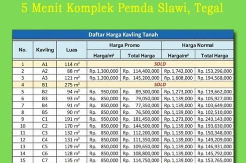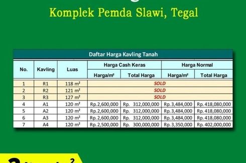 ‹ › 1/4 Tanah dijual dengan di Slawi Wetan, Jawa Tengah Tegal, Jawa Tengah RP 300,000,000 120 m2 Memang harga tanah di sekitar lokasi yang kita pilih, tak bisa dipungkiri. Justru ini pertanda bagus, bahwasanya, lokasi yang kita pilih amatlah diminati. Kalau ada yang nawarkan tanah harga Rp. 60 Jt-an bayarnya panjang aneh malah. Ada sertipkatnya gak tuh? Melanggar aturan Pemda gak?Harga yang kami tawarkan tak kami bilang murah karena konotasinya malah murahan. Kami bilang harga kami moderat. Sebanding... muhajir master 1441 Call