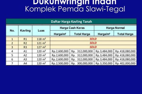 ‹ › 1/5 Tanah dijual dengan di Slawi Wetan, Jawa Tengah Tegal, Jawa Tengah RP 312,000,000 120 m2 Membeli satu unit tanah produk kami, legalitas aman terlindungi, tanpa ada kecemasan membayangi. Kini, saatnya hidup tenang dan bahagia menempati tanah baru. Selamat, Anda memiliki aset berharga hingga ke anak cucu.Info Sekitar Lokasi :-5 Menit SDN 1 Dukuhwringin-1 Menit Komplek Pemda Kab. Tegal-10 Menit Tugu Poci Ayu SlawiSelling Point :-Sertipikat SHM-Row Jalan 5 Meter (Mobil Simpangan)-12 X Angsur... AnamProperty Call