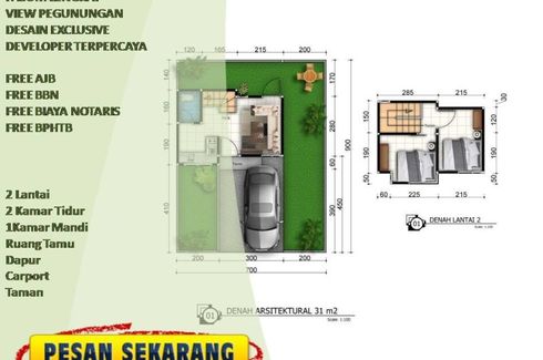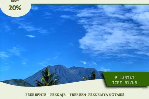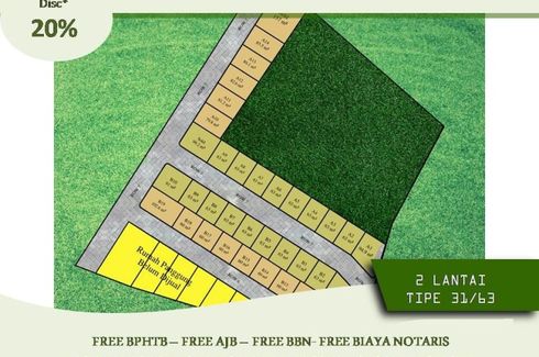 House for sale of 30sqm, consisting of 2 bedrooms and 1 bathroom located at Sukun, Malang. Facilities include: Swimming pool, Air conditioning, Gym, Internet, Security, Car park, Garden, Tennis court, Children's area, Panoramic view, Concierge, Library, Grill and Video cable.