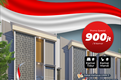 Rumah Dijual, yang terdiri dari 5 kamar tidur dan 5 kamar mandi berlokasi di Blimbing, Malang. Fasilitasi meliputi: Security, Car park, Garden, Balcony, 24-hour security, Electricity, Terrace, Water, Patio dan Fully fenced.