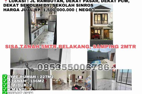 ‹ › 1/1 Rumah dijual dengan 4 kamar tidur di Air Hitam, Riau Pekanbaru, Riau RP 3.5 Milyar (RP 11,666,667 / m2) 4 4 300 m2 Rumah Rumah Dijual dari 300sqm, yang terdiri dari 4 kamar tidur dan 4 kamar mandi berlokasi di Air Hitam, Pekanbaru. Global Property Pekanbaru Penjual Terverifikasi Call