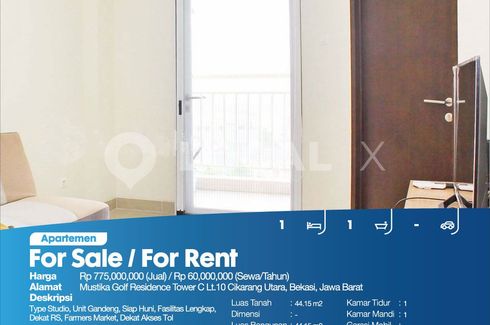 Type Studio, Siap Huni, Fully Furnished, Ada Water Heater & Kulkas, Fasilitas Lengkap, Dekat RS, Farmers Market, Dekat Akses TolFor Sale - JualApartemen Mustika Golf Residence Lt.9 Cikarang Utara, Bekasi, Jawa BaratHarga. Rp 650,000,000 (Jual)Deskripsi Properti. Type Studio, Siap Huni, Fully Furnished, Ada Water Heater & Kulkas, Fasilitas Lengkap, Dekat RS, Farmers Market, Dekat Akses TolLuas Tanah....