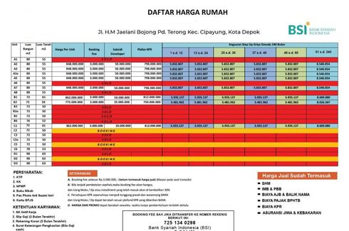‹ › 1/18 Townhouse dijual dengan 3 kamar tidur di Bojong Pondok Terong, Jawa Barat Depok, Jawa Barat RP 812,000,000 (RP 13,311,475 / m2) 3 2 61 m2 Townhouse Air conditioning Internet Security Car park Garden Balcony Wi-Fi Children's area +12 🏡 RUMAH PALM CITAYAM – DESAIN MEWAH, HARGA TERJANGKAU!✨ CUMA BOOKING 3 JUTA, LANGSUNG KPR ALL IN TANPA BIAYA TAMBAHAN!🚉 Hanya 3 Menit ke Stasiun Citayam🚗 Akses cepat ke Jakarta & Depok🏡 Desain MEDITERANIA 2 Lantai + Smart Home System💡 Siap Huni, Legalitas Aman (SHM & IMB)📐 Type 74/55 – 2 Lantai✅ 3 Kamar Tidur✅ 2 Kamar Mandi✅ Dapur, Ruang Keluarga & Makan✅ Carport✅... HimmaPropertiGroup Call