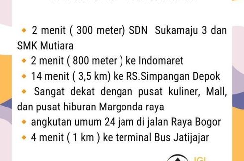 Anda sedang cari rumah di Tapos, Depok?Lokasi Terjangkau, dengan akses strategis Pinggir Jalan Raya Tapos,Hunian Premium, Ber-konsep Jepang????tenang, kita punya solusinya :Spesial Promo Launching :???? Harga Mulai 900JT-an???? Cukup Booking Fee 5 Juta & DP 10Jt???? Cicilan Mulai Dari 7 Jt-an???? Free Biaya KPR, BBN, SHM, AJB, IMB, Notaris, Balik Bama.???? Free AC 1Pk (1 unit)???? Free Torn Instalasi...