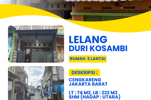 ‹ › 1/6 Rumah dijual dengan 1 kamar tidur di Cengkareng Barat, Jakarta Jakarta Barat, Jakarta RP 1.1 Milyar (RP 4,954,955 / m2) 1 1 222 m2 Rumah Water LELANGRUMAH 3 LANTAIDURI KOSAMBI, JAKARTA BARATHARGA JUAL : 1,1 M (Harga Jual Sudah Termasuk Pengosongan)HARGA PASARAN : 2 MJalur mobil Akses Tol Gerbang Tol Rawa BuayaPusat Perbelanjaan terdekat Puri Indah Mall, Lippo Mall Puri Fasilitas Kesehatan terdeka RS Pondok Indah - Puri Indah, RSUD KembanganDekat Stasiun KRL Rawa BuayaHARGA BELUM TERMASUK Biaya : BPHTB 5%Bea Lelang 2%PPN 1,2%Balik NamaBiaya... Call