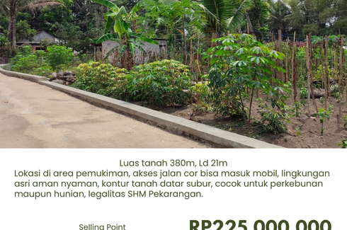 ‹ › 1/2 Tanah dijual dengan di Argo Mulyo, Yogyakarta Sleman, Yogyakarta RP 500,000,000 1,500 m2 Luas 1500mLd 49mStts SHM pertanian,akses jalan aspal bisa mobil,diarea pemukiman,,tanah subur,lingkungan aman,nyaman dan asriHarga 500jt all inSelling pointDekat dengan:✅Kolam renang sendang kwanen✅Pasar Mbutuh✅Bumi perkemahan keurun✅Klinik dokter✅Minimarket✅SD negeri✅SMP N cangkringan✅Balaidesa✅Merapi Golf Call