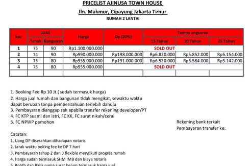 Townhouse dijual dengan 3 kamar tidur di Munjul, Jakarta