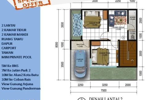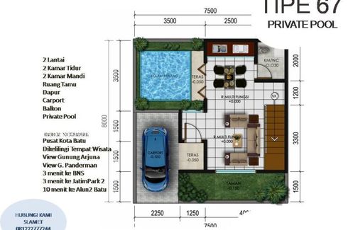 Villa for sale of 75sqm, consisting of 2 bedrooms and 2 bathrooms located at Dukuh Pakis, Surabaya. Facilities include: Swimming pool, Internet, Security, Car park, Garden, Children's area, Panoramic view, Concierge, Grill and Video cable.
