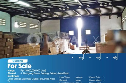 Lokasi Strategis, Siap Pakai, Di Jalan Raya, Dekat Akses TolFor Sale - JualGudang Jl. Narogong Bantar Gebang, Bekasi, Jawa BaratHarga. Rp 13,000,000,000 (Jual)Deskripsi Properti. Lokasi Strategis, Siap Pakai, Di Jalan Raya, Dekat Akses TolLuas Tanah. 1200 m2Dimensi. 30x40Luas Bangunan. 300 m2Sertipikat. SHMKamar Tidur. -Kamar Mandi. -Garasi Mobil. -Hadap / View. TimurLOCAL X Kelapa Gadinglocalx.id(021)...